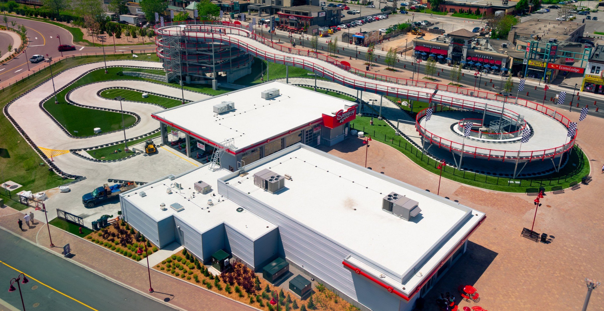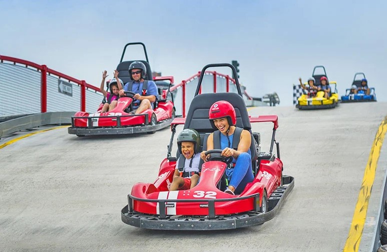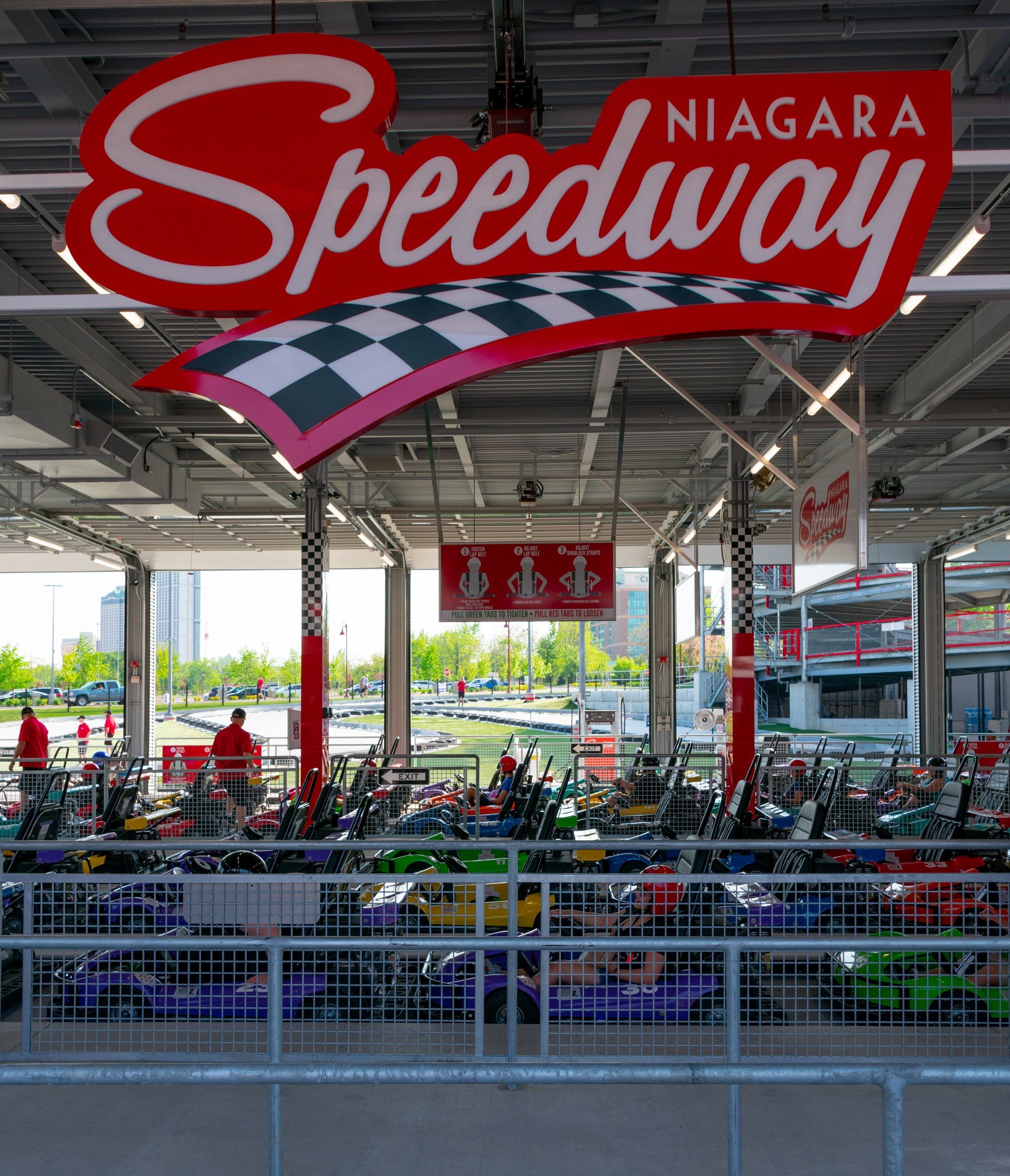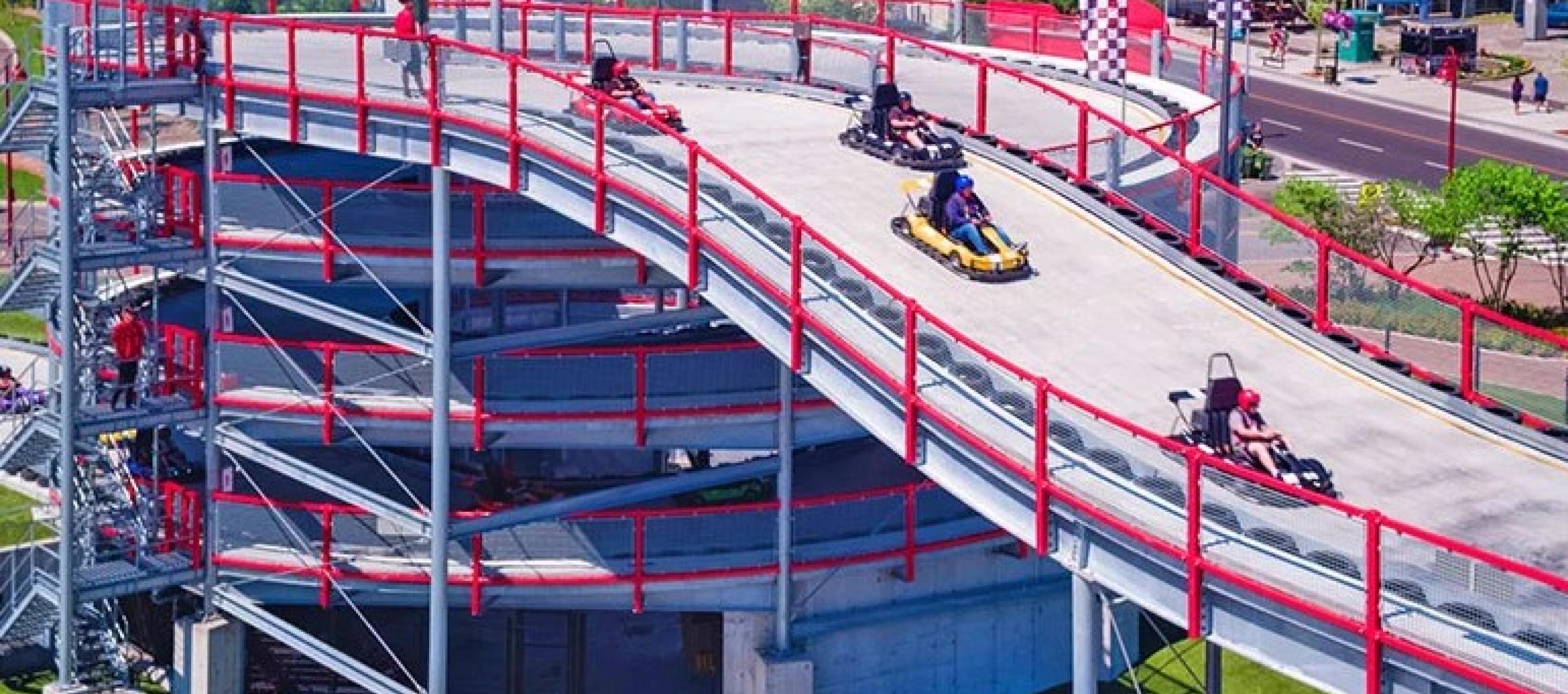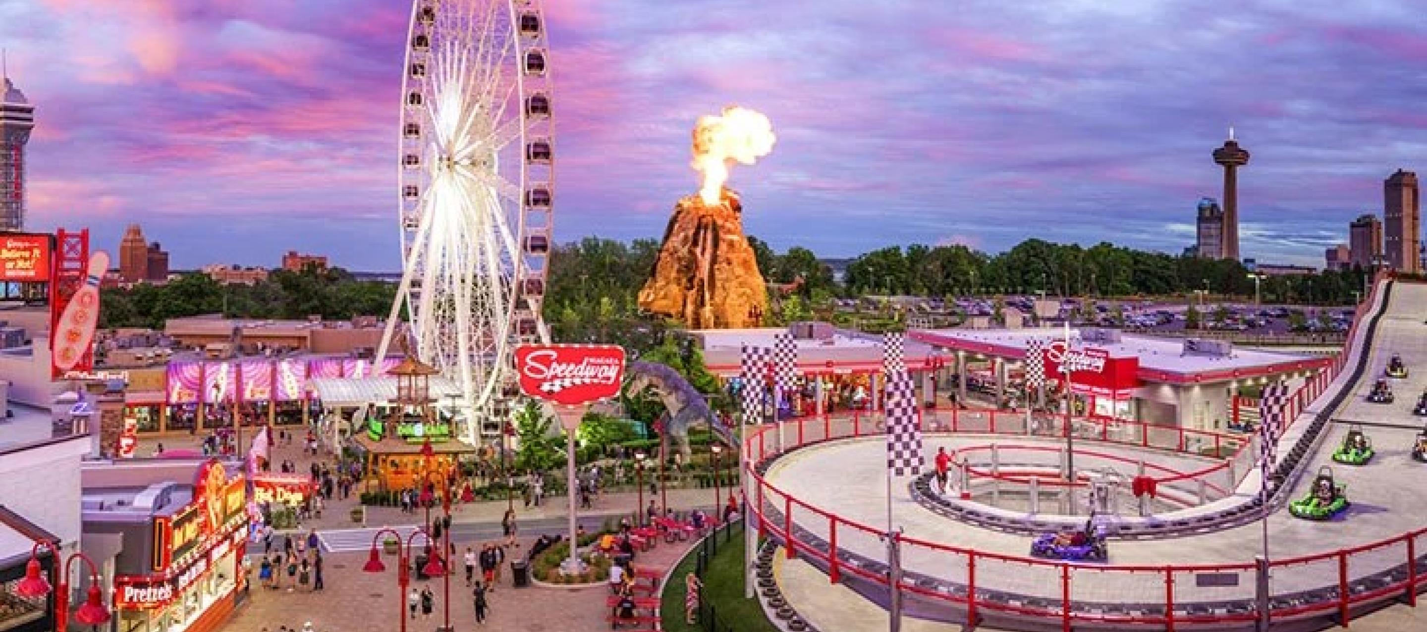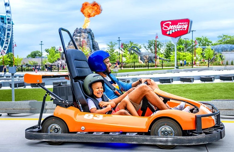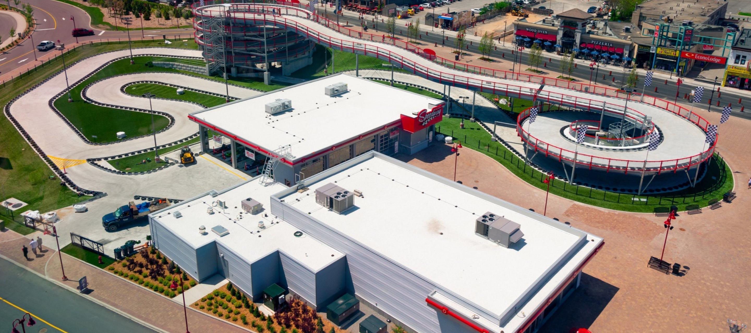 Located at the top of the "Street of Fun", the Niagara Speedway is North America's largest elevated go-kart track facility. Dubbed a "mario-kart" inspired racetrack, this Niagara Falls Raceway is a marriage of traditional throttle powered go-karts with the added thrill of an elevated roller coaster style track.
