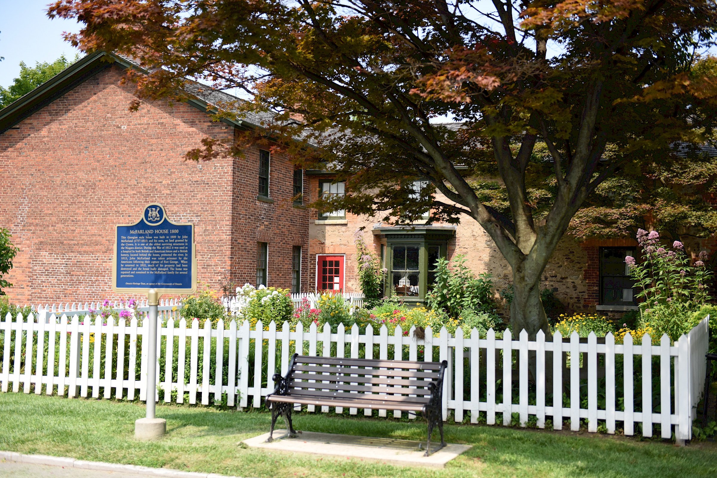 The home is of particular historical significance as it survived the burning of Newark, a tragedy that took place when the American forces occupying Fort George retreated from the area in December 1813. This makes McFarland House one of the oldest structures in Niagara-on-the-Lake, as well as the oldest building owned by The Niagara Parks Commission. The garden at McFarland House is illustrative of a typical mid-19th-century dooryard garden. Gardens located in the dooryard (typically defined as the area between the house and the nearby kitchen or barn) were usually used for both culinary and decorative purposes. McFarland House thanks to the Garden Club of Niagara for their planning and upkeep of the garden. Restored by The Niagara Parks Commission in 1959, McFarland House is furnished in the Empire style and portrays life in Niagara between 1800 and 1830.